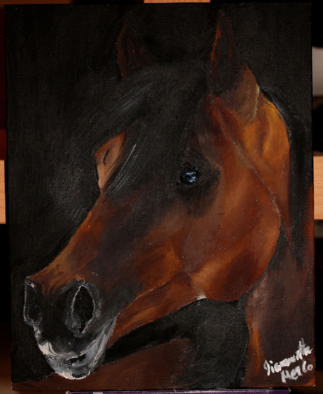 Ecco quello che ho fatto oggi: primo disegno- realizzato a pastelli ad olio.. Mi è stato chiesto da una ragazza (io faccio i ritratti di cavalli su commissione) ed eccolo finito secondo disegno- Cavallo arabo su cartone telato ad acrilico  Non mi soddisfa moltissimo, ma era da tanto che non facevo nulla ad tempera o ad acrilico