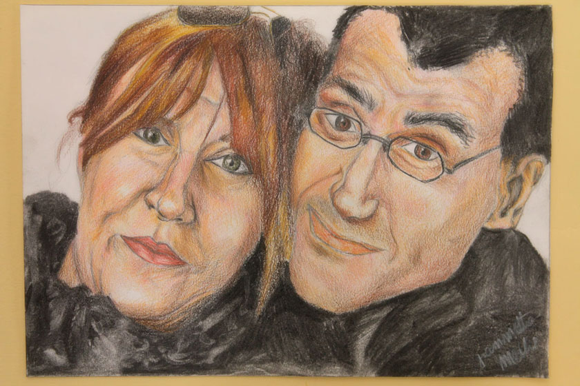 Ecco uno dei miei ultimi disegni, o meglio un ritratto!  E' mia madre con il suo compagno Tecnica: matite colorate e carboncino