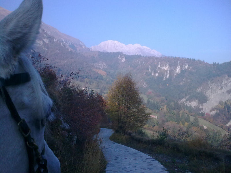 si anche a me piace molto guardarmi intorno quando passeggio, a piedi o a cavallo..diciamo che è uno dei pregi di vivere in montagna... (tra l'altro mi sono appena accorta che in lontananza si vede la mia cascina, è al centro della foto circa... la prima scendendo