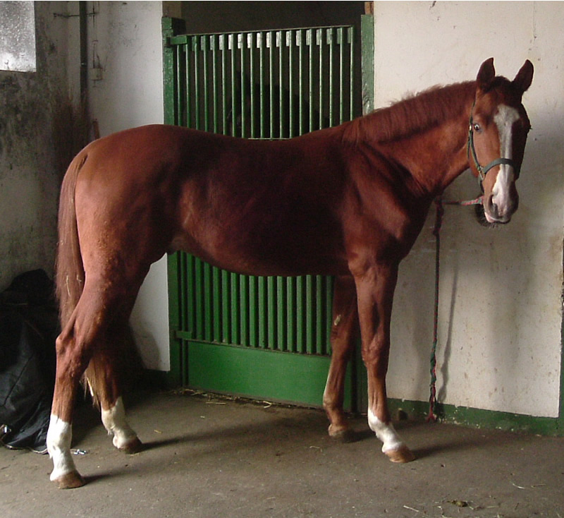 Giocando con l'altro mio cavallo si è ferito piuttosto profondamente all'occhio sinistro sul tubo del recinto del piccolo paddock in sabbia. Si era fatto un bel buco (a due mm dall'occhio!) e gli hanno fatto diversi punti. Ora si vede solo la cicatrice, per fortuna è andato tutto bene. (grazie per "spendore"  )