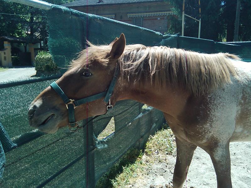 Marty, il 23 di questo mese compirà 18 mesi!! In realtà per doma non intendo la doma con la sella, ma quella da terra, seguendo i principi della doma dolce  (non Parelli&co. Parlo di una scuola tutta italiana...  )... questo perchè era diventato troppo "fisico"(non cattivo, sia chiaro!) e un pò indisciplinato, quindi è stato portato a "scuola" il 16/08 dove ha fatto passi da gigante e ora è quasi educato come un cavallo adulto... il prossimo passo(fra un anno e mezzo) è quello di mettere la sella praticamente come se niente fosse... Perchè ovviamente nel frattempo io continuerò a fare gli esercizi che mi daranno a casa! Al fine di avere un cavallo che risponde perfettamente ai comandi e che sia il più leggero possibile... Il problema è imparare bene a fare questi esercizi!!! Io sono alla terza lezione(lui ne ha già fatte molte di più con l'istruttrice) e per ora lui è più bravo di me... ahahah!! Oh, non è mica facile imparare a usare bene la longia e lo stick... sembrava facile...  Foto... ho solo questa, post lavoro: