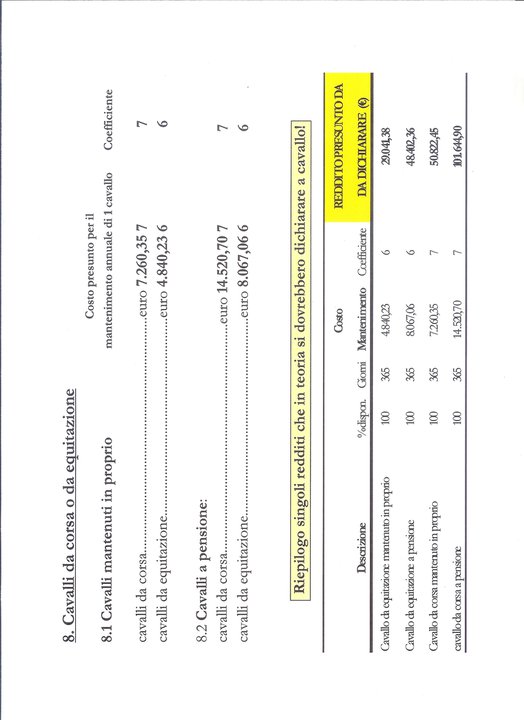 io sinceramente ho avuto conferma dal mio veterinario che ha intestati 14 cavalli del suo allevamento ovviamente a spese ridottissime che è stato richiamato per il redditometro... non è affatto giusto...ed io che ho la mia cavalla ed i 2 pony come finisco?